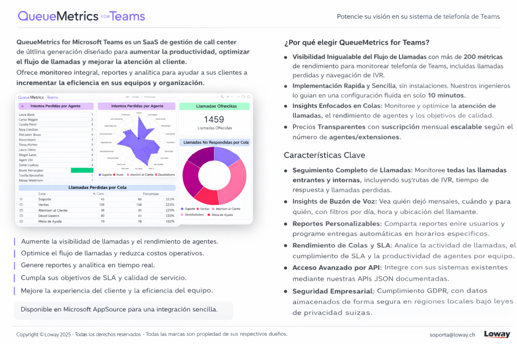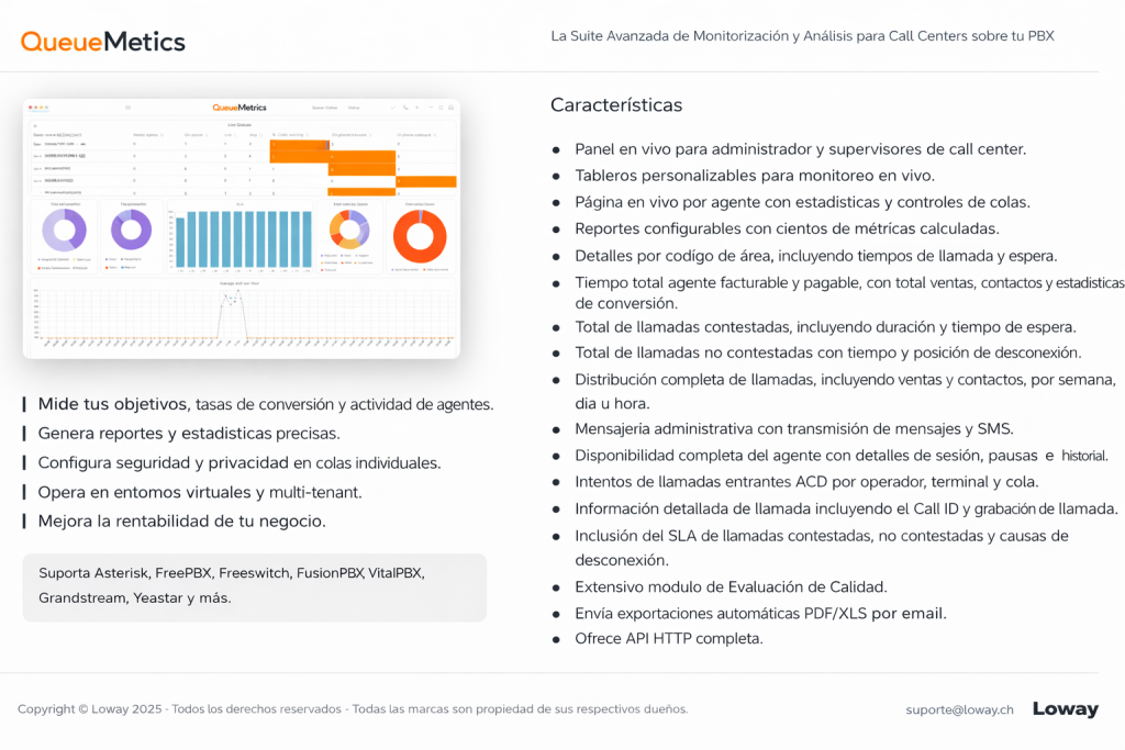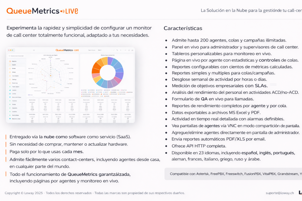 • Funciona de forma nativa con QueueMetrics para análisis avanzados
